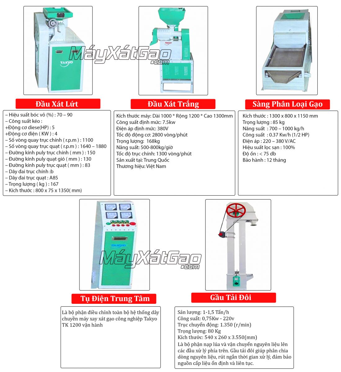 Thông Tin Hữu ích của Dàn Máy Xát Gạo Liên Hoàn Takyo TK 1200 - Mẫu cải tiến
