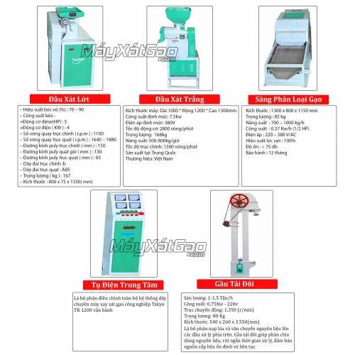 Thông số kỹ thuật dàn máy xay xát gạo công nghiệp Takyo TK 1200